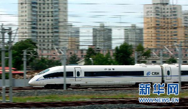 這是我國第一條擁有完全自主知識產(chǎn)權(quán)、具備世界一流水平的城際高速鐵路——京津城際高速鐵路的列車從北京南站駛出(2008年8月1日攝)。新華社記者公磊攝